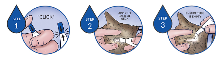 Revolution comes in a topical solution that facilitates hassle-free application. Just open the tube by pressing the cap. Part the dog’s hair between the shoulder blades until the skin is visible. Squeeze the tube three or four times and empty the entire contents on the skin in one spot.